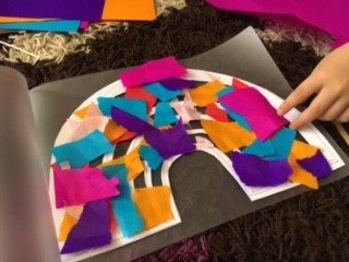 A great, creative idea from Clair Girvan. This is one for school age children, or those close to it. She says that she did this with her four year old and helped with his colour exploring and cutting and ripping skills.