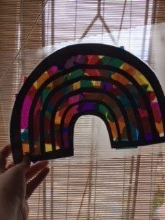 This middle area will be used to fill with the colour paper we tried a rainbow, hand cut outs, cloud and rain, sun and moon and butter flys. We will be trying alphabet and numbers next time!